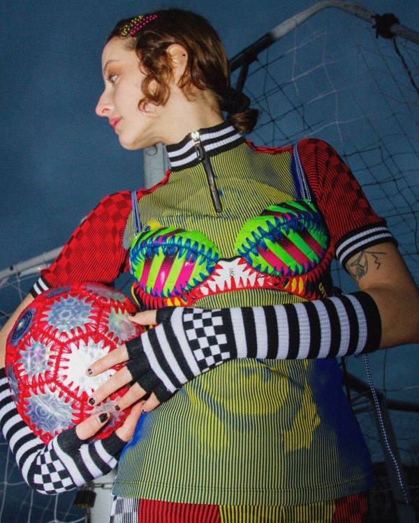 “Vasculhei todo o meu equipamento esportivo. Fui a um monte de brechós, reuni cobertores de malha e pedi ajuda da minha tia, diretora do Markham Soccer Club. Ela pediu que a comunidade doasse tênis e bolas de futebol velhas”, lembra a estilista ao site Ssense.