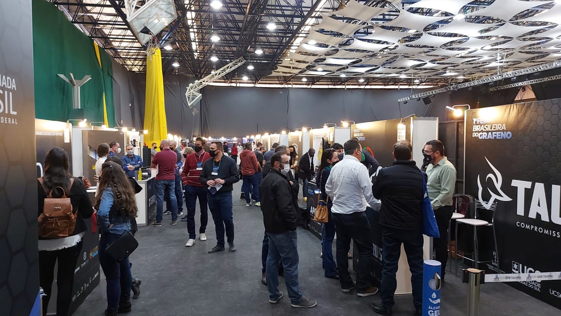 O presidente executivo do IBTeC, Paulo Griebeler; o vice-presidente executivo, Dr. Valdir Soldi; o coordenador da Unidade de Materiais, Mestre Ademir Paulo Dorneles de Varga; o coordenador da Unidade de Biomecânica, Dr. Rudnei Palhano, o coordenador do Laboratório de Microbiologia, Dr. Markus Wilimzig, e o coordenador técnico, Paulo Model, estiveram na tarde de terça-feira, 13 de julho, na 1ª Feira Brasileira do Grafeno, realizada pela Universidade de Caxias do Sul.