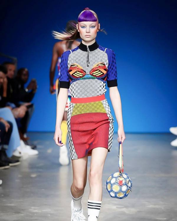 Com tanto sucesso, o corpo docente da Saint Martins elegeu a artista para representar a faculdade no London Fashion Week. Em sua estreia no evento, a canadense resolveu utilizar a técnica de upcycling para compor os acessórios da coleção. Para isso, ela recorreu às expertises do colega Marko Baković, que desponta na moda europeia por criar calçados cheios de design e inovação. A dupla desenvolveu botas over the knee e mules a partir do modelo Superstar, que acaba de completar 50 anos. A Superstar Boot e a Superstar Mule ostentam saltos altos, as listras triplas que marcam os produtos da label esportiva, zíperes prateados e, não à toa, as logos e palmilhas originais do modelo.