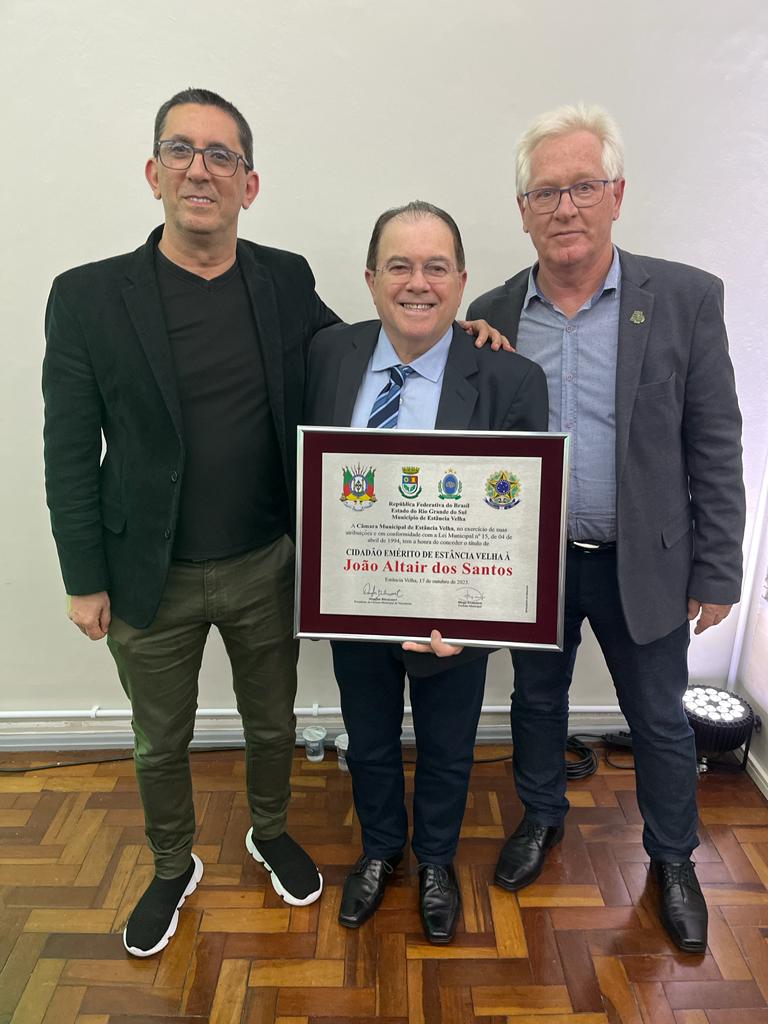 Com a casa legislativa lotada, João Altair dos Santos e Otto Theophilo Koch, receberam o título de Cidadão Estanciense e Emérito. A Sessão Solene aconteceu na terça-feira, 17, no Plenário da Câmara Municipal de Vereadores de Estância Velha e contou com a participação de autoridades municipais, amigos e familiares.