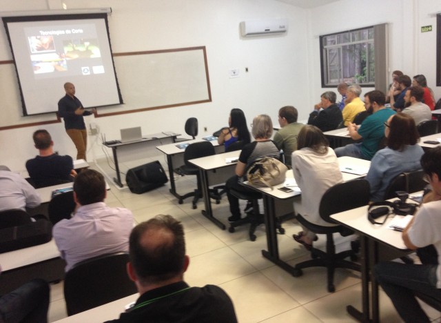 O técnico operacional em máquinas de corte da Comelz, William Souza, foi o segundo palestrante, falando sobre “A tecnologia no setor de corte e a evolução de seu produto”. Ele apresentou o sistema de corte digitalizado que vem sendo implantado em todo o Brasil, lembrando que “o mundo mudou, a moda mudou e com isto os prazos também”, enfatizando o ganho de tempo e a redução de custos como os principais benefícios do sistema, que tem ainda um componente adicional que é a redução da necessidade de mão-de-obra no setor de corte. A automação do corte pode resultar em ganhos que vão de 3% a 7% no uso de matéria-prima couro, e em níveis que vão de 9% a 16% no corte de materiais têxteis e sintéticos, segundo o palestrante. Sem contar a possibilidade de correções imediatas na produção, o que resulta em ganho de tempo. De acordo com William Souza, “empresas que dominam e acompanham moda precisam cada vez mais de sistema que automatizem sua produção”.