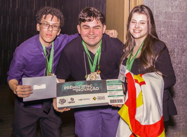 O trabalho escolhido para receber o Prêmio IBTeC de Inovação foi sobre adaptação de calçado para pessoas com dismetria (condição em que a pessoa tem uma perna mais longa que a outra), realizado pelos alunos Gabriel Ferreira, Lucas Bernardes de Lima e Melissa Oliveira Westhauser, do Colégio Santa Catarina, de Novo Hamburgo/RS, sob orientação do professor Marcelo Araújo Machado. Com a conquista, os alunos receberam três passagens para a Febrace - Feira Brasileira de Ciência e Engenharia, que acontecerá no Campus da USP, em São Paulo/SP, em março de 2023, para apresentarem lá também a sua pesquisa.