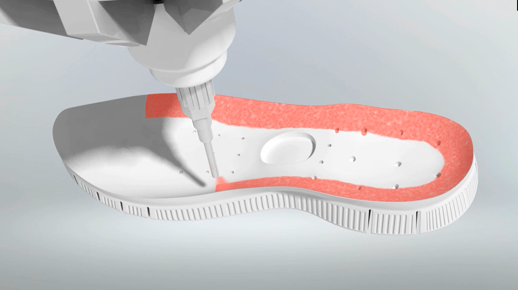 Feito 100% digitalmente, o processo de colagem do calçado com o adesivo da Henkel proporciona maior adesão, maior produtividade e redução de custo total.